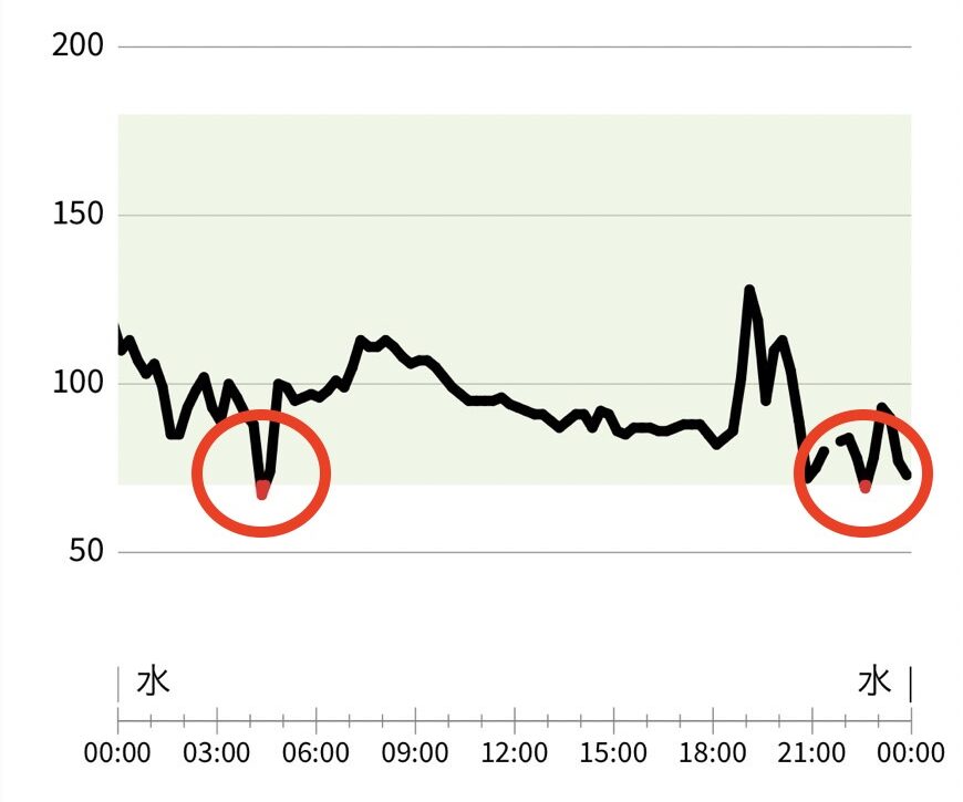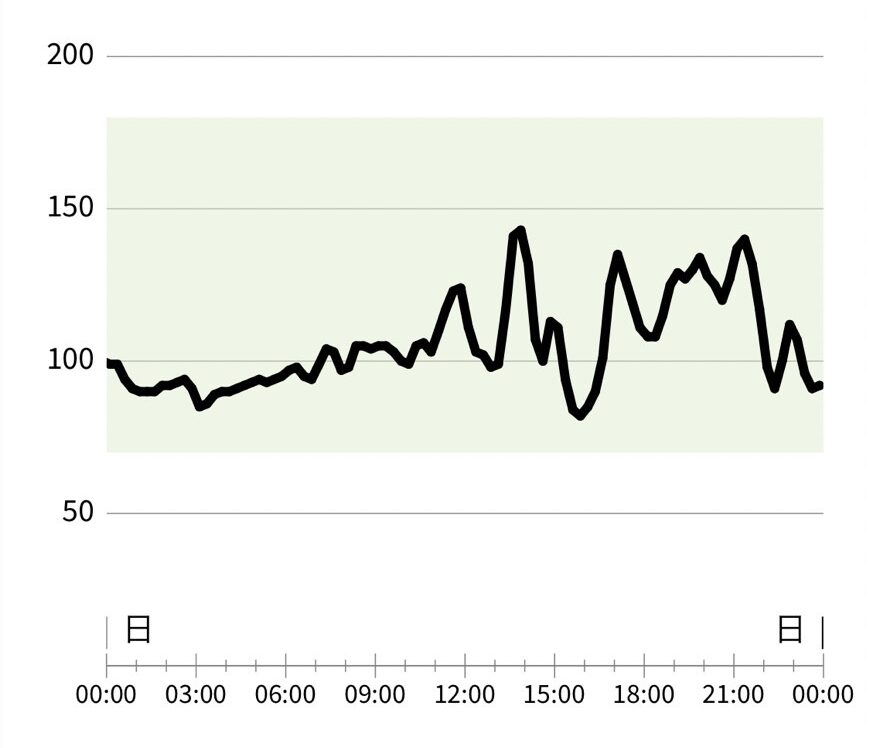 最初の1週間は予想通りの血糖値の動きをしましたが、予想以上に乱高下している結果になりましたね。
