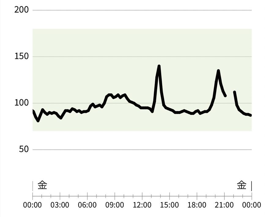 2週間の中で最も血糖値が上がったのが2枚目ですね。